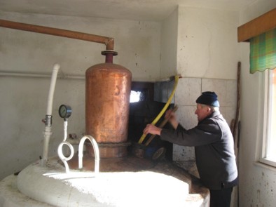 Bepillantottunk a pálinkafőzőbe. Rend és tisztaság mindenütt. Pontos előjegyzés szerint érkeztek a cefrés szekerek. Gazdag volt a 2010-es esztendő szilvatermése, ám a sok eső miatt szenvedett a minőség: alacsonyabb a gyümölcs cukortartalma, gyengén eresztett a cefre.