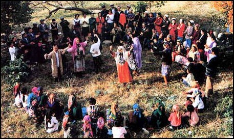 1977. június 15., szerda. Elvittek a terménybemutatóra, majd a műszaki kiállítást is megnéztük. A fogadtatás délben egy órakor kezdődött. A helybeli zenészek jellegzetes népi hangszereiken ujgur népdalokat játszottak, és az idősebbek közül néhányan táncra is perdültek, majd mi is közéjük álltunk. Mozgásukból és kézmozdulataikból fel lehetett ismerni a régi lassú csárdás elemeit. Délután 5 órakor elvittek egy iskolába, ahol a gyerekek rajzminta segítsége nélkül perzsaszőnyegeket szőttek. Tanítási szünetben az udvaron nagy körökbe állva énekeltek, tapsoltak, és a körön belül két-három pár egymással szemben táncolt. A kör közepén álló behívott egyet a körbe, azzal járt pár lépést, majd a körbe hívott helyére ment. Most a körön belül lévő gyermek választott párt, és táncolt vele. Így folytatódott, és cserélődtek a párok, mint mi Körben áll egy kislányka, lássuk, ki lesz a párja kezdetű gyerekjátékunkban. Minket is behívtak a körbe, és velük táncoltunk. Próbáltuk utánozni a mozdulataikat. A szívem is gyorsabban vert az örömtől, amikor egypár kollégámmal együtt feleségemet, Marikát és engem is behívtak a körbe táncolni. Szerettem volna magasba emelni a kis partneremet, és világgá kiáltani. Mit is? Az örömömet. A viszontlátás örömét. Mikor Marikámra néztem, láttam, hogy könnyes szemmel táncol, arcáról különös ragyogás sugárzott, amilyent csak a megszállottak szemében láthat az ember. Lehet, hogy éppen Kőrösi Csoma Sándor szellemét idézte egy pillanatra, hisz ő adott vágyunknak reményt, hogy eljuthassunk ősi rokon népeinkhez. Vagy talán a kézdivásárhelyi Jakabos Ödönre gondolt, aki élete árán gyalogolt végig azon az úton, amelyen egykoron Kőrösi Csoma Sándor, s a szeretett szülőföld rögét vitte a nagy tudós sírjára.