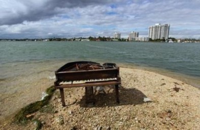 A hárommázsás zongora csaknem kétszáz méterre tűnt fel Miami partjától pár hete egy reggelen egy homokzátony legmagasabb pontján, ahol még a legerősebb dagály idején sem érhette el a víz. A buzgó találgatások során akadt olyan amerikai művész, aki magára vállalta a fuvart, mondván, hagyott ő már az Egyesült Államokban más helyeken is zongorákat, például a Halál völgyében, így tiltakozva a művészet pusztulása ellen. Bizonyítani azonban nem tudta, hogy valóban az ő műve a tengeri változat is. Csütörtökre aztán kiderült, hogy mégis művészi szándék húzódik meg a hangszer különleges elhelyezése mögött. A zongorát tönkretették tizenévesek egy mulatságon, egyikük pedig megszervezte a kiszállítást a homokpadra. A 16 éves fiú ettől remélte, hogy felvételt nyer egy rangos művészeti iskolába. Egyelőre annyit ért el, hogy a floridai hal- és vadvédelmi hatóság megparancsolta a zongora elvitelét, különben illegális szemétlerakás címén eljárást indít a gyermek és szülei ellen. A család huszonnégy órát kapott a zongora eltüntetésére, de már a határidő vége előtt elvitte. A hangszert megszerette egy csapat sirály, rendre azon pihengettek a madarak.