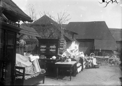 Gere István fotóján egy mikóújfalusi hozomány elemeit láthatjuk 1908-ból. Az udvaron várakozó bútorzat jelzi, hogy e településen ekkor már a polgárias bútor kiszorította a hagyományos festett bútorokat.