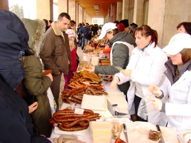 Negyvenkét székelyföldi termelÅ‘ kÃnálta házi készÃtésű termékeit a csÃkszeredai megyeháza oszlopsora között a Hagyományos Székely Termékek Havi Vásárán. A rengeteg vásárlót vonzó rendezvény kÃnálatában nagyrészt sertéshús- és gyümölcskészÃtmények, savanyúságok, tejtermékek, kerámiák szerepeltek.