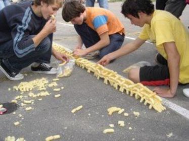 A közösségépÃtÅ‘ játékok, illetve sport- és kreativitásversenyek általában a szünetekben folytak, de szerdán, amikor általános osztályfÅ‘nöki órákat tartottak, egész napra kiterjedt a rendezvény. A gólyacsapatok hétfÅ‘n zászló alatt gyülekezve, az alkalomra választott névvel, indulóval és kiáltással mutatkoztak be, majd a beavatás szertartását kellett elviselniük (fogkrémet kentek arcukra, felmérÅ‘dolgozataikat egységesen hármasra értékelték, majd kiállÃtást szerveztek belÅ‘lük, verset Ãrtak és szavaltak). A tavaly még az általános iskola padjait koptató nemzedék közel harminc tagja igencsak változatos versenyszámban bizonyÃthatta rátermettségét, tehetségét. Tervek szerint a sorozatot jövÅ‘ héten a gólyabál zárja. (hecser)