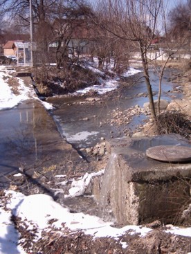 Amint az a fényképről megfigyelhető, a vajnafalvi Tavasz utca végén a szennyvezeték az akna után lebukik a patak vize alá, majd a túlsó oldalon felbukkan, és folytatja útját. Itt történt — immár nem is először — a dugulás, melyet az illetékes szakemberek megpróbáltak elhárítani. A kép hátterében látható hidrológiai állomás antennája mellett két helyen is kibontották az utcát, de mindhiába. Úgy tűnik: a víz alatti buktató alagút dugult el. Ha valóban ez a helyzet, a technikai dilemma akkora, hogy megér egy "gyászmisét".