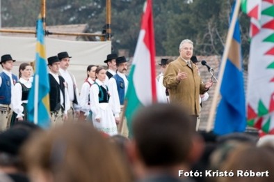 Kelemen Hunor RMDSZ-elnök, kulturális miniszter kifejtette: az erdélyi magyarság számára a következő esztendők az önrendelkezésről, a régiókról, az autonómiáról szólnak, a magyarságnak pedig ugyanúgy össze kell fognia, mint az 1848-as forradalom és szabadságharc idején. Felhívta a figyelmet: ma már természetes, hogy Székelyföldön szabadon lehet ünnepelni március 15-ét, de huszonegy évvel ezelőtt ez egyáltalán nem volt természetes. Szerinte a magyarságnak folytatnia kell harcát az autonómiáért, mégpedig nem valaki ellen, hanem saját jövője érdekében. "Nem a vesztesek, hanem a győztesek útját akarjuk választani, hogy mi magunk mondhassuk meg, milyen legyen a jövő" — mondta az RMDSZ elnöke.