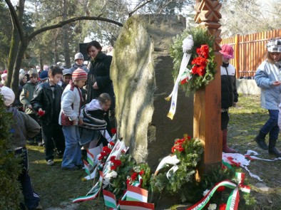 Elhangzott a Tizenkét pont, s a Kossuth Lajos azt üzente című dal sem maradt el. Megkoszorúzták a névadó emlékművét, annak tövébe egy-egy szál virágot vagy nemzetiszín szalagot helyezett el a sok-sok gyerek. Koszorút helyezett el többek között Pálosi Ferenc, a magyar köztársaság konstancai tiszteletbeli konzulja.
