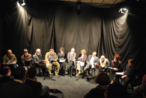A stúdióteremben tartott felolvasószínházi előadást Bocsárdi László új kalandként említette, ismertette a szerzőt, majd Tadeusz Słobodzianek A mi osztályunk című darabját a Tamási Áron Színház és az M Stúdió társulat színészei közösen adták elő, azaz olvasták fel. Érdeklődésünkre Bocsárdi elmondta, már egy ideje készülnek arra, hogy nálunk is elindítsák ezt a színházi műfajt. ,,Ez a Słobodzianek-darab, melynek fordítása egy hónapja került a kezünkbe, nagyon alkalmasnak tűnt ahhoz, hogy közvetlen kapcsolatba kerüljünk a nézővel; rendkívül korszerű módon íródott, teljesen másfajta kapcsolatot épít a nézővel, mint egy megszokott dramaturgiai darab, tehát közvetlenül nekünk beszélnek a szereplők, időnként nyilván egymás között is, ezáltal a felolvasószínház nagyon jó lehetőségnek bizonyul ahhoz, hogy találkozzunk egy szöveggel." Mivel jövőre szeretné színpadra vinni ezt az előadást, úgy érezte, ,,érdekes lehet, ha a közönséggel közösen elindulunk ezen az úton"; izgalmas lesz azoknak, akik most vagy a felolvasópróbák időszakában hallják és majd megnézik az előadást, így láthatják, mi lesz egy szövegből színpadra kerülve – magyarázta Bocsárdi László.