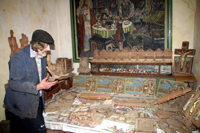 A testvérpár naiv alkotó. Rég túl vannak életük delén. A két világháború között jegyezték be őket a katolikus leányegyház születési anyakönyvébe. Lakásuk valóságos kiállítás. Szerteágazó témájú alkotásaikat sokféle anyagból készítik. Első helyen áll a fa és az agyag. De van ott ólomból, bádoglemezből, fémhuzalból alkotott temérdek figura. Az udvaron olyan fémplasztikával találkozunk, amelynek vázát ezer és millió fémhurokkal kapcsolták egymáshoz. Ki tudná azt utánozni! Az volt az érzésünk, hogy csak így lehetett átvészelni, átélni a lepergett évtizedeket, legyőzni az időt. Nincs a világnak olyan tárgya, ami elkerülte volna figyelmüket. Fő helyen áll a keresztre feszített Krisztus. Agyagból készült, de váza drót... Nincs a világnak az az anyaga, amiből ők ne fabrikáltak volna valamilyen figurát. Fából megalkották az egykori ojtozi erdei iparvasút kicsinyített mását. Ha úgy adja a Fennvaló, festeni is készek. Naiv festményeikre egyedi rámát illesztenek. Érdekesek a legkülönbözőbb anyagokból készített mozaik-féleségeik is.