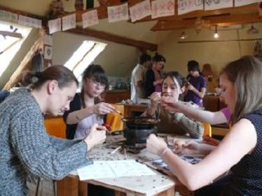 Olvadt viasz illata járja be a sepsiszentgyörgyi Míves Ház emeletét, a Guzsalyas Alapítvány székhelyét.