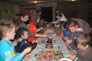 A két nap alatt mintegy hatvan óvodás és kisiskolás sajátította el a hagyományos tojásírást Rádu József, Szabó Judit és Ildikó szakavatott irányításával.(Iochom)