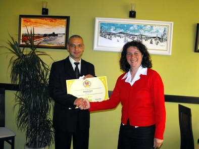 Ünnepélyes keretek között adta át tegnap a Civilek Háromszékért Szövetség (Civek) elnöke, Bereczki Kinga a Bertis Kft. üzletágmenedzserének, Solymosy Lászlónak az érdemoklevelet, amely a Civek által indított világhálós felmérés győztesének jár.