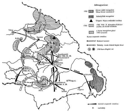 A magyar állami önállóságért indított háború stratégiájában azonban 1703 őszén Erdély mellékes terület. Rákóczi Erdélyben nem nyithat nyílt hadszínteret. Meglehetősen messze ható következményekkel járt, hogy Erdély az első hónapokban kiesett e háború fősodrából, s egyelőre csonka államiságának intézményes szintjén sem tudott hozzákapcsolódni a királyságbeli vállalkozáshoz. Míg Magyarországon már az első hetekben országos politikai elv és államszervező akarat érvényesül, Erdélyben eluralkodik az anarchia és az antifeudális indulat. (...)