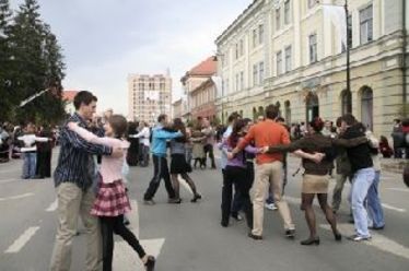 De hogy ez mirefel van, nem tudom, mondja egy fiatal hölgy társának, miközben lábával a taktust veri, tájékozatlansága nem csak őt minősíti, a szervezők is elmondhatták volna, ez a tánc világnapjának sepsiszentgyörgyi megnyilvánulása, persze, eme kis hiányosság mit sem von le a rendezvény látványosságából, immár a Korzót teljes hosszában megtöltötték a Kék Hold Táncklub és a Laboda amatőr táncosai, lejtve a két csoport társasági és néptáncot ugyanazokra a zenékre, rekordkísérletről szó se, csak egy kis figyelemfelhívás, tíz perc tánc, aztán vissza a következő nehéz hét előtti pihenésbe menekvéshez, mosolygott rendőr és ütemesen bólogatott csendőr, beállt a táncparketté avanzsált aszfaltra gyerek és anyja, és még Katát is táncba vitték a két lépés előre, kettő hátra, fél fordulat és ugyanaz vonaltáncban, aztán taps. Megérdemelten.