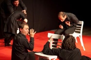Pláne, hogy csupán két szövegváltozatra. Amit pénzfeldobással. Szereplők számát: kockadobással. Kellékeket: szerencsekerékkel. Cselekvéseket: eldönti a számítógép. És így tovább. A körítés: lazítás. Átmenet két impró közt. Azokon nincs sok idő mélázni. Kétszer ugyanaz: kizárva. Azaz kétbilliárdnemtudomhány a lehetősége az ismétlésnek. Vagyis: kizárva. Tehát megismételhetetlen előadás. Miként kétszer ugyanabba a folyóba lépni is lehetetlen. Mert ez az improvizáció lényege. Meg a színészi tehetség. Kiben több, kiben kevesebb.