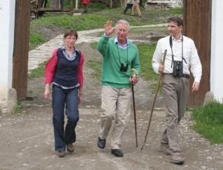 Több mint egy óráig nem történik semmi, majd a tornácon feltűnik a walesi herceg. Kíséretével körbejárja a telket, még a legjelentéktelebbnek tűnő vendégházba is bekukkant, a vakolással jól haladókkal hosszasabban elbeszélget. Visszavonul, s helyette nemsokára Kálnoky Anna jön ki egyezkedni a sajtóval: ha megígérik, hogy a sétálni kívánó vendéget nem követik, részük lesz némi integetésben és lencsevégre kapható mosolyban. A több órája derűs napsütésben várakozó, meglehetősen elfáradt sajtós sereg kész egyezséget kötni. Fél óra múlva a vendégház kapuja szélesre tárul, s kis idő múlva átlagos ruhába öltözötten megjelenik a Kálnoky házaspár által közrefogott Károly herceg. Mintegy köszönetképpen a megértésért lassan, ráérősen haladnak el előttünk. Az egyik kolléga jó angolsággal megkérdi, miként telt az első, Zalánpatakon töltött estéje, éjszakája. A trónörökös nem állt meg, de kicsit visszafordulva két szóban válaszolt: különleges élmény volt.