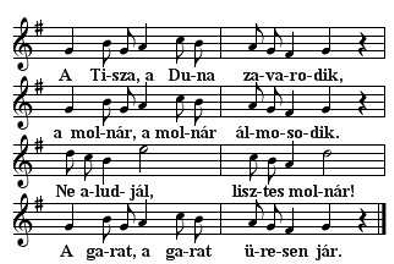 A kör közepére áll egy gyerek, ő lesz a molnár. Amíg a többiek kézen fogva körben járnak és énekelnek, a molnár úgy tesz, mintha aludna.