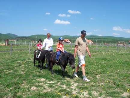 És kezdődik a lovasiskola. A pszichés vagy fizikai fejlődésükben hátrányos helyzetű gyerekek számára már ismerősök a lovacskák. Az oktatók kézen vezetik a kis lovakat, a gyerekek a nyeregkápába fogózkodva szemmel láthatóan szeretik és élvezik a lovaglást, Huni – Antal Hunor – "régi" ismerősként mosolyog rám, és kezével is int. A nyeregben magabiztos, mint ovis társai is, a sikerélmény sugárzik az apróságok arcáról, s ami engem meglep, a pónik mindenike "kezes állat", inkább partner, semmi rakoncátlanság, szeleburdiság, a három-négy éves gyerkőcök méretei is passzolnak, arányosak, az oktató fiatalok a negyvenöt perces tréning idején a gyerekek koncentráló képességére, testtartására is figyelnek.