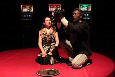 Az M Stúdió fizikai színházzal merészen kísérletező társulatának nem ez az első találkozása Shakespeare nagy műveivel. A stúdió megálmodója és létrehozója, Uray Péter már színpadra állított az elmúlt években egy elbűvölő Rómeó és Júlia s egy izgalmas és meghökkentő Hamlet előadást. Ennek a harmadik kísérletnek ő már csak (csak?!) koreográfusa, a rendező és szövegkönyvíró Mihai Măniuţiu kolozsvári rendező (és író), aki egyáltalán nem titkolja, hogy afféle popcorn-Othellót szeretne színre vinni, "William Shakespeare műve nyomán" és árulkodó műfaji meghatározása is: "tragikomédia krízis idejére"...