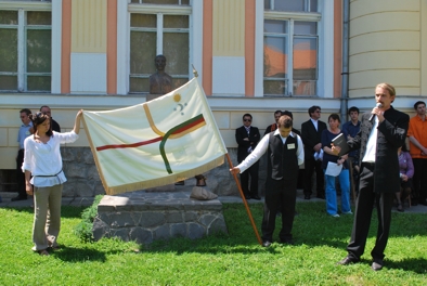 A zene a nap meghatározó motívuma volt, s mire a dráma tagozat élő szoborparkja felsorakozott az udvaron, s elhúzták a rézfúvósok, megkezdődött az ünnepélyes megnyitó. Sebestyén Lázár Enikő iskolaigazgató köszöntőjében azt fejtegette, mindannyiuk számára öröm, hogy ilyen sokan összegyűltek, s az iskolába beköltözött a jó hangulat és a jókedv, valóban sikerült ünneppé varázsolni az ünnepet. Péter Alpár tanár az iskola új zászlaját ismertette, mondván, ez egy olyan zászló, amely összefogja az iskola egész közösségét, három színnel szimbolizálva a zene, képzőművészet és dráma tagozatot. Figyelmet érdemel, ahogy a tizenegyedikes Mihály Péter elmondta Kányádi Sándor Halottak napja Bécsben című versét, végül, miután Dávid György plébános megáldotta a zászlót, Sztakics Éva alpolgármester egy-két éven belül virágzó rózsalugast ígért az iskola udvarára. Eközben csak azért kellett szurkolni, hogy az élő szoborparkot alakító diákok, miközben hősiesen ellenállnak a bámészkodók érintési kísérleteinek – szabály, hogy a nézőknek nem szabad hozzányúlniuk a szobrokhoz –, illetve a tálcán hordozott zsíros és zakuszkás kenyérnek, ne kapjanak hőgutát a tűző napon. De nekik, miként az egyik drámás lány fogalmazott, az ad erőt, ha nézik őket, így aztán a sok látnivalóval az egész iskola egy nagy, szerethető, zsibongó, lüktető térré alakult – számtalan érdekes, leleményre és kreativitásra ösztönző rendezvénnyel, kísérlettel –, s a szokatlanság jegyében a volt diákok képzőművészeti kiállítására még a zenetanárnők is rollerrel érkeztek...