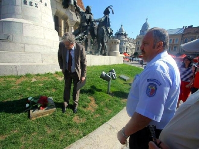 Egy csokor virágot helyezett el Füzes Oszkár, Magyarország bukaresti nagykövete a kolozsvári Mátyás király szoborcsoport elé kitett Iorga-idézetet tartalmazó táblára, a polgármesteri hivatal rendőre azonban felhívta a figyelmét arra, hogy csak a felirat mellé teheti le a virágokat.