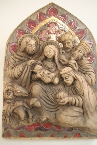 A csángó művész Máriát és a kisded Jézust ábrázoló figurális, domborműszerű kerámiái szakrálissá avatják a teret, a megrendítő kisplasztikák "kitisztított lelkű" leképezései annak a puritán, mélyen vallásos, diószéni világnak, ahonnan a "névtelen szentek között felcseperedett" Petrás Mária származik. Vallomása szerint az ottani emberek "tudták, mi a rendje a világnak", s a családok gazdagságát "8–10–12 gyermek jelentette"; az ünnepeiket hittel, imádsággal megülő csángók "varázslatossá" tudták tenni nehéz életüket, "Szűz Mária erejével elmesszítették a testi-lelki bajokat". Ebből a világból táplálkozik Petrás Mária, megteremtve ikonszerű, méltóságteljességet és egyszerűséget sugárzó remekművei egész sorát. A tárlatot megnyitó Cseke Gábor "nagyszerű kerámiaszobrocskákról" beszélt, mondván, hogy a Mária-ábrázolások egyediek, összetéveszthetetlenek, Petrás az ünnep megtartó erejébe kapaszkodik. A "pünkösdváró hangulatba illesztett" vándorkiállítást Gáspár Álmos, Ségercz Feri és Vitályos Lehel nívós zenei produkciója tette még emlékezetesebbé.