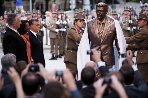 Átadták Ronald Reagan volt amerikai elnök bronzszobrát a Szabadság téren, ahol Orbán Viktor és Condoleezza Rice is méltatta erényeit a hidegháború befejezésében.