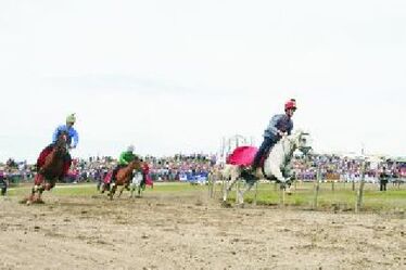 Túl előrementem?... Jó, akkor visszatérek a vágtához. Harminc lovas nevezett, a legtöbb (húsz) Kovászna megyéből. Ezek négy-négy tagot számláló csoportokra osztva előfutamokkal kezdték meg a küzdelmet a három helyért, mely jogot ad a Nemzeti Vágtán való részvételre. A csodálatra méltó paripák jó gazdákról árulkodtak. A futamok pedig ki-kisúgták a nézőtér felé, hogy: "türelem, uraim, türelem, ez az első vágtánk, résztvevői mindenekelőtt tanulni jöttek, tapasztalatot szerezni, türelem, türelem, a jövőben majd jobb lesz, különösen, ha az a bizonyos lovasfórum teljesíti hivatását, s a soron következő falunapokon vágtát is rendeznek..." Na de akadt néhány igazán ügyes, tapasztalt versenyző is – Ambrus János, László Albert, Bajna Árpád, Filep Marót, Ambrus Szabolcs, Veress Bálint, Bacskó Levente, Bihari Béla, Gajzágó Áron, Csobot Barna... –, akiknek dicséretére nyugodtan idézhetem Homérosz sorait: "..ki érti dolgát, lova bár silányabb, / Csak a célra néz, ha fordul, nem felejtve, / Hogy irányította lovát gyeplője, / Biztosan hajt, lesve, nincs, ki megelőzte." Az előfutamok beindította rosta egészen belejött, s a középdöntőben kitartóan folytatta munkáját. Négyen maradtak a döntőre: Filep Marót (Illyefalva, Nor nevű lovával), Ambrus Szabolcs (Székelyudvarhely, Flamingo n. l.), Bagoly Szabolcs (Sepsiszentgyörgy, Samir n. l.), ifj. Bihari Béla (Kálnok, Neagra n. l.). Ki izgulva, ki nyugodtan a döntőre koncentrált, közben az Óriáspince- tető felett ijesztően tornyosultak az esővel fenyegetőző sötét felhők. Megvárták, míg Bartha Edy négyes fogata leír egy kört, s amikor megkezdte a másodikat, megeredt az eső, tombolni kezdett a szél... Aki csak tudott, menekült. Az egyébként előre jelzett vihar, zápor elmosta a vágta döntőjét. A szervezők, látva a felázott pályát, döntöttek: tekintettel a lovak és a versenyzők egészségére, lefújják a döntőt. A Nemzeti Vágtára jogosult mind a négy döntőbe jutott versenyző.
