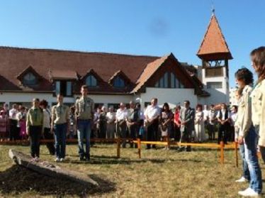 Az alapkövet és a benne elhelyezett, Az Úr az én kősziklám zsoltáridézettel ellátott réztáblát Kató Béla főjegyző áldotta meg, közreműködött Darvas László színművész és a Sipos Zoltán vezette Pro Musica kamarakórus, a gyülekezet elénekelte a székely és a magyar himnuszt. Az ünnepség szeretetvendégséggel ért véget, a helyszínen adományokat gyűjtöttek az épülő templom javára.