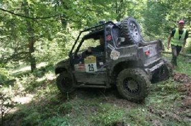 Szombat délelőtt fél tizenegy után néhány perccel a setétpataki fogadótól vág neki a tíz autóból és két motorkerékpárból álló konvoj az útnak. A megyei út felé tartunk, de nem térünk rá, mellette gyorsan az erdőbe kanyarodunk. A csapatot vezető nagybaconi Rebeka Zsolt biztos kézzel tartja a kormányt, vált, a mezei út mély keréknyomát tengelyközre veszi, s gond nélkül győzzük le a meredek emelkedő jelentette első akadályt. A hátsó ülésen megszólal a telefon, s a táborból közlik, az egyik csapatnak motorhibája lett, vissza kellett fordulnia. A távolban a meglehetősen forgalmas hatodi tető látszik, mi a Harcsa felé vesszük az irányt; csak úgy porzik mögöttünk az út. Az egyik megállónál kicsit türelmetlen már a társaság, arra kérik, vigye nehezebb terepre, hogy "dolgozhassanak". Noszogatásuk ellenére nem áll kötélnek Rebeka Zsolt, attól tart, megzavarhatjuk a versenyzőket. Néhány kilométer megtétele után csak letér az útról, és meredekebb, vadabb helyen haladunk. Egy kis patakon vágunk át egyenesen, mások inkább a szélét, a mocsarasabb részét választják. Egy erős, de nehéz Mitsubushi Pajero beragad a nádasba, s hiába erőlködik, nem tud kijönni, csak jobban beássa a kerekét. Egy kis Suzuki Samurai pillanatok alatt kirántja a nagy terepjárót. Hogy a tekintélyén esett csorbát kiköszörülje, a Pajero megint nekifut az emelkedőnek, de ismét csak segítséggel tud szabadulni. A Suzukinak nem okoz gondot az amúgy tényleg meredek mart, pillanatok alatt kint van. Tapssal jutalmazzák a bravúrt.