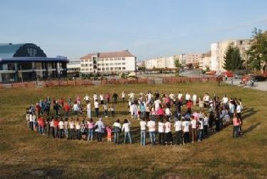 A Zöld Nap Egyesület kezdeményezésére Kézdivásárhelyen tegnap immár harmadik alkalommal hívták fel a figyelmet a Béke Világnapjára: a sportcsarnok és a Sinkovits-stadion között százhúsz, zömében fehér pólóba öltözött önkéntes egymás kezét fogva rajzolta ki a béke nemzetközi jelét.
