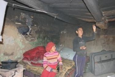– Jolánék egy olyan házacskában laktak, amely nem az övék. A gondatlan tüzeléssel meggyúlt, és leégett a viskó teteje. (1. kép) Nem akartuk kijavítani, mert másnak a tulajdona, s ha egyszer megjelennek, egy család télvíz idején az úton marad. Nem volt mit tenni – folytatta az alpolgármester –, kissé odébb évekkel ezelőtt az önkormányzat újat épített számukra. Ennek is leégették a tetejét. (2. kép) Igen ám, de egyéb baja is van: a plafon szakad be, s akkor a csillagos ég lesz a mennyezetünk – mutatta Jolán leánya, Gyöngyi. Oldala megbomlott, hull le róla a sártapasz, a gerendák között kilátni az erdő felé. A gyertya és a petróleumlámpa füstjétől minden fekete, füst és kátránybűz tölti meg az egész házat. Ha elfogy a gyertya s a petróleum, sötét borul a viskóra.