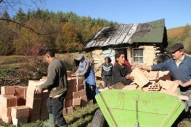 Időközben megérkezett a segélyszállítmány. A gerendának és szarufának valók már helyben. Ambarus Gábor tanácstag, Illyés Ferenc karbantartó, Berszán Tibor alkalmazott és Mocsel Jenő, amolyan romafelelős egy rakomány gyári téglát hozott. (3. kép) Megkezdődött az építkezés. Sietni kell, mert itt vannak az -emberek! (Értsd: nov-ember.)