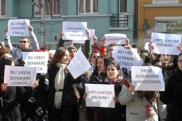 Másodszor tüntettek tegnap az önálló magyar tagozat megalakulása ellen a Marosvásárhelyi Orvosi és Gyógyszerészeti Egyetem román hallgatói: a MOGYE román diákszervezetének felhívására több mint 150 fiatal vonult a Maros megyei prefektúra elé.
