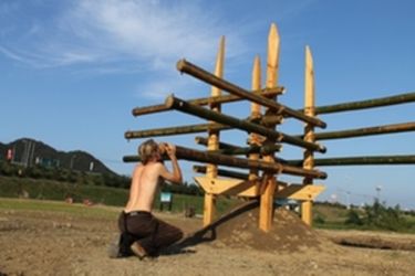 – Pályázat útján kerültem be. A terv rajzát, leírását kellett elküldeni. A világ minden tájáról huszonnyolcan jutottunk el erre a rendezvényre, ezúttal meglepő módon hárman Erdélyből. Domb című munkámat egy földhalmon elhelyezett állványra szerelt bambusznád furulyák alkotják. A helyszínen a tervemben használt rönkök felcserélődtek bambuszcsövekkel, amelyeket kukoricahánccsal erősítettem a faszerkezethez. A helyi anyagok, élmények átformálták eredeti elképzelésemet.