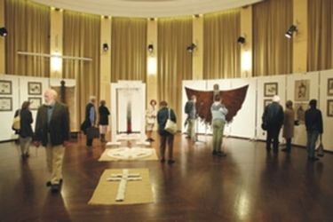 Deák M. Ria térbeli textiljeit, a jól ismert bagolysorozatot, a zarándoklata nyomán született háromdimenziós keresztjeit, a Lélekkaput vonultatta fel. Deák Barna drótnyomatokon lovait, csaholó kutyafalkáit, dróthálóit mutatta be, újra emlékeztetve a kutyahierarchia, a csaholó ebek, a lóvá tett kutya szerepére. E tárlat anyagát tavaly a Gyárfás Jenő Képtárban láthatta az itthoni közönség.(a. l.)