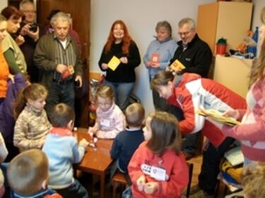 Szombat délelőtt egy gyermekcsoport foglalkozásaiba is bepillantott a ludwigshafeni küldöttség, mely a huszonegy fős csapatot irányító pedagógusoknak a kézműves-tevékenységeknél felhasználható kellékeket adományozott.