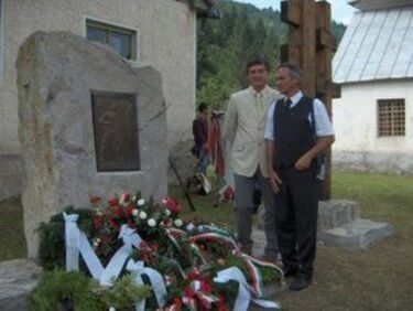 Dr. Grezsa István és dr. Berényi Károly az ojtozi Honvédkő leleplezésénél