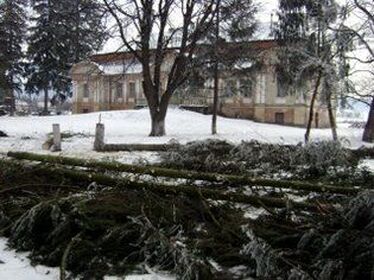 Székelytamásfalváról riasztottak, hogy a kultúrházként működő egykori Bányai—Thúry-kúria udvarán kivágták a fenyőfákat (felvételünk).
