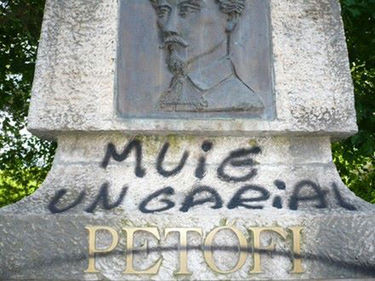 Ismeretlenek magyarellenes feliratokat festettek a fehéregyházi PetÅ‘fi-emlékműre – közölte tegnap a Maros megyei RMDSZ. A közleményhez mellékelt fényképeken látható, hogy az elkövetÅ‘k festékspray-vel MaÂgyarországra vonatkozó, trágár szöveget Ãrtak a PetÅ‘fi-dombormű alá, a talapzatra pedig a Trianon szót festették.