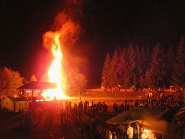 Este zajlott a cigányfolklór-tábor résztvevőinek gálaműsora – igaz, Kaczor Feri és Majláth Attila fellépése sokkal több nézőt vonzott, mint a gálaelőadás, melyen a világ szinte minden tájáról érkezett táncosok és zenészek villogtatták meg tudásukat. A kommandói Vadkaláka néptáncegyüttesnek a végén már a mennydörgés kontrázott, és a villámok adták a rivaldafényt. Siettek is az óriás tábortűz begyújtásával, a lángok pillanatok alatt szinte a Lakóca csúcsáig értek – a közönség legnagyobb örömére. Az esőcseppek ártani nem tudtak a lángoknak, a tűzgyújtás annyira jól sikerült, hogy adott pillanatban a helyi tűzoltóknak kellett fékezniük a csóvákat, és a meleg miatt a színpad egyik sarkába szorultak a fellépők is.