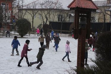 Sapka, sál, kabát, és ki az udvarra. Az idei első hó tegnap minden diákot kicsalogatott a szünetben, így volt ez a sepsiszentgyörgyi Református Kollégium elemistái körében is, akik a Kós Károly tervezte Kőrösi Csoma Sándor utcai épület mögött, ha nem is gyúrtak nagy hógolyókat, hisz éppen csak megállt egy kicsit a fehér hótakaró, de egymást dobálták a puha hólabdákkal. (fekete)