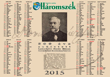 Ha 2014-ben a székelység talán legismertebb történelmi személyiségére emlékeztünk, s falinaptárunkat a kétszáz éve született és 165 éve hősi halált halt Gábor Áron emlékének szenteltük, 2015-re egy talán kevésbé ismert, de nagy formátumú politikus, közösségéért felelősséget vállaló, egyházát támogató, vagyonát a közösség szolgálatába állító személyiséget választottunk. A Szentivánlaborfalván kétszáz évvel ezelőtt született, a ’48–49-es forradalom és szabadságharc idején kormánybiztosi megbízást ellátó Berde Mózsa arcképével díszített falinaptár a tőle választott idézettel együtt hirdesse, hogy „szegény legény is hasznára lehet a társadalomnak, az emberiségnek, nemzetének erős akarattal”.