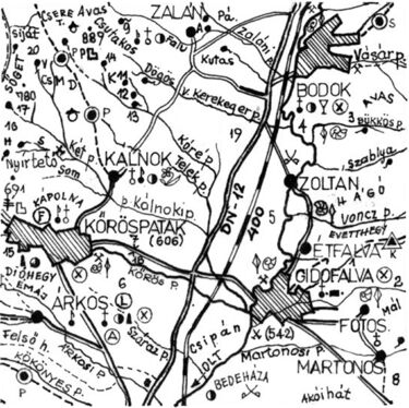 Számmal és betűvel jelölt helynevek ezen a térképkocán: