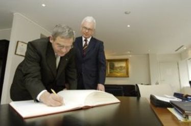 Tőkés és Pöttering. Bejegyzés az elnöki kabinet vendégkönyvébe