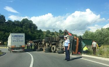 Felborult egy utánfutós haszongépjármű Sepsibükszád közelében a 12-es országúton szerdán kevéssel dél után.