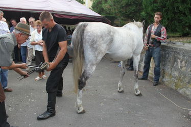 A vasárnap délelőtt az előadásoké volt. A Lábas Házban viszonylag szerény közönség előtt főképp szakmai részleteket fedtek fel az előadók, de szó esett művészet és szakma összefüggéseiről is. A találkozó utolsó negyedében újból a látványé volt a főszerep, az érdeklődők láthatták, mit jelent egy minőségi penge előállítása, valamint egy ló patkolását is végigkövethették (fotó). Utóbbi ismét bizonyította: nehéz és körülményes folyamatról van szó, hiszen az állat türelme is véges, illetve a jó patkó előállításához sok figyelem és pontosság szükséges.