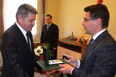 Magyarország Csíkszeredai Főkonzulátusán, a Lázár-ház eskütermében Zsigmond Barna Pál főkonzul Áder János köztársasági elnök által adományozott állami kitüntetéseket adott át erdélyi közéleti személyiségeknek tegnap este.