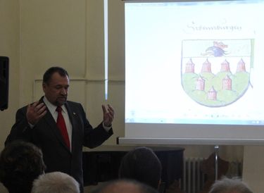 A szakértő vetített képes előadásából mindenekelőtt az derült ki a viszonylag nagyszámú érdeklődő számára, hogy a címer alkotóelemei az 1765-ös adománylevelet jóval megelőzően már fellelhetőek voltak különböző dokumentumokban, térképeken, címerkönyvekben. Erdély címerének kialakulására mégis viszonylag későn került sor, mivel a Magyar Királyság részeként vajdák kormányozták, ők meg saját családi címeres pecsétjükkel hitelesítették az okiratokat.