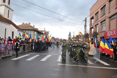Az ünnepség a Secuiana Rt. szomszédságában levő új ortodox templomnál kezdődött, ahol katonai tiszteletadással és egyházi szertartással emlékeztek a „nagy egyesülésre”. Felszólalt Sebastian Cucu és Jean Adrian Andrei, Kovászna és Hargita megye kormánymegbízottja, valamint Andrei Făgărăşanu, Hargita és Kovászna megye ortodox püspöke. Ez idő alatt a szervezők román zászlókat osztogattak, egyetemista lányok pedig kokárdákat tűztek a résztvevők kabátjaira.