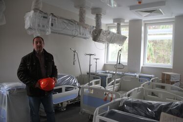 A még épÃtés alatt álló és az elkészült, illetve félig kész részek bemutatását András-Nagy Róbert kórházmenedzser vezette (fotó), aki hangsúlyozta, ahhoz kétség nem fér, hogy intézményük modern, jól felszerelt kórházzá alakul át, de továbbra is fennáll az orvos- és asszisztenshiány, az optimális működéshez még legalább ötven orvosra és százötven asszisztensre lenne szüksége a hatszáz ágyas kórháznak. A menedzser ismertette az épület végsÅ‘ beosztását. Az alagsorban a sürgÅ‘sség és a röntgendiagnosztikai osztály működik, a földszinten lesz a szülÅ‘blokk, néhány járóbeteg-rendelÅ‘, a laboratóriumok, irodák, a betegfelvevÅ‘ és regisztráció. Az elsÅ‘ emeleten a műtÅ‘k, az intenzÃv osztály és az ortopédia kap helyet, a második emelet a sebészeté, a harmadik a kardiológiáé és a nÅ‘gyógyászaté, a negyediken működik a szülészet és újszülött osztály, az ötödik a gyermekosztályé. A négy műtÅ‘ben és az intenzÃv osztályon kezelt, steril levegÅ‘t biztosÃtanak, áramkiesés esetére a helyi áramforrásra automatikusan átkapcsoló rendszert épÃtettek be, légmentesen záró ajtókkal látják el a műtÅ‘ket. A harmadik emeleti nÅ‘gyógyászati osztályon a két- és háromágyas, fürdÅ‘szobával ellátott kórtermek már elkészültek.