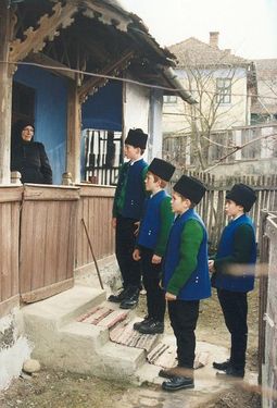 Tudták a csapatban, hogy az én kedveltem a lány. Boldogan sorakoztak fel utánam. Szép csendesen bémentünk az ereszbe, ott az ajtó előtt elhelyezkedtünk, és fújni kezdtük, hogy Betlehemi pusztán örvendetes hír van… Utána még elénekeltünk kettőt, aztán katonás tartással bévezettem a csapatot a szobába. Én egészen előre mentem, s utánam egyes sorban a többiek feltakartak. Amikor mindenki bent volt, egyszerre arcot vettünk a házigazda felé, és levettük katonásan a fejbelit is. És akkor, az ünnepélyes csendben, én mondani kezdtem a béköszöntőt, melyet vezér létemre nekem kellett megcsinálni versben:
